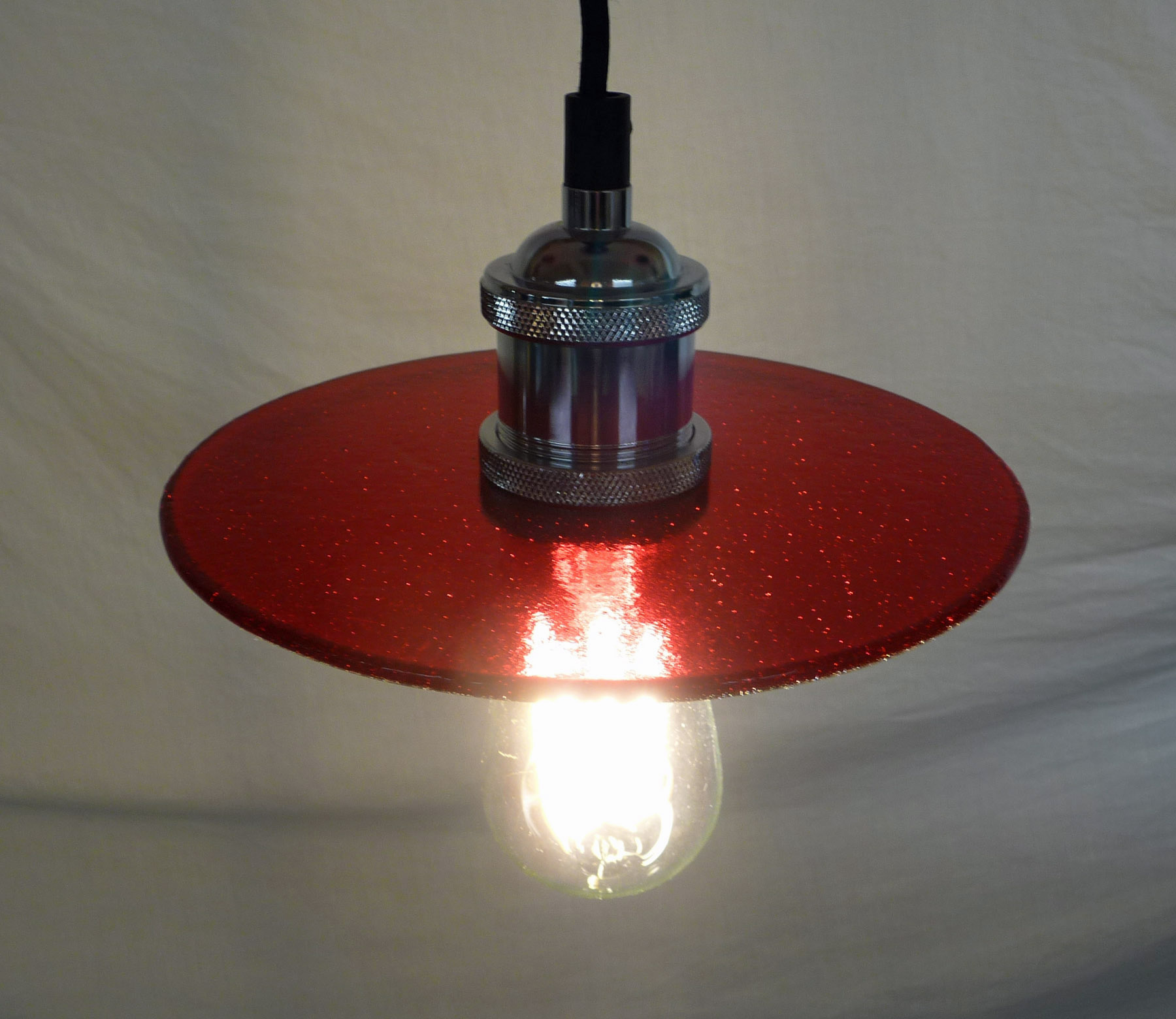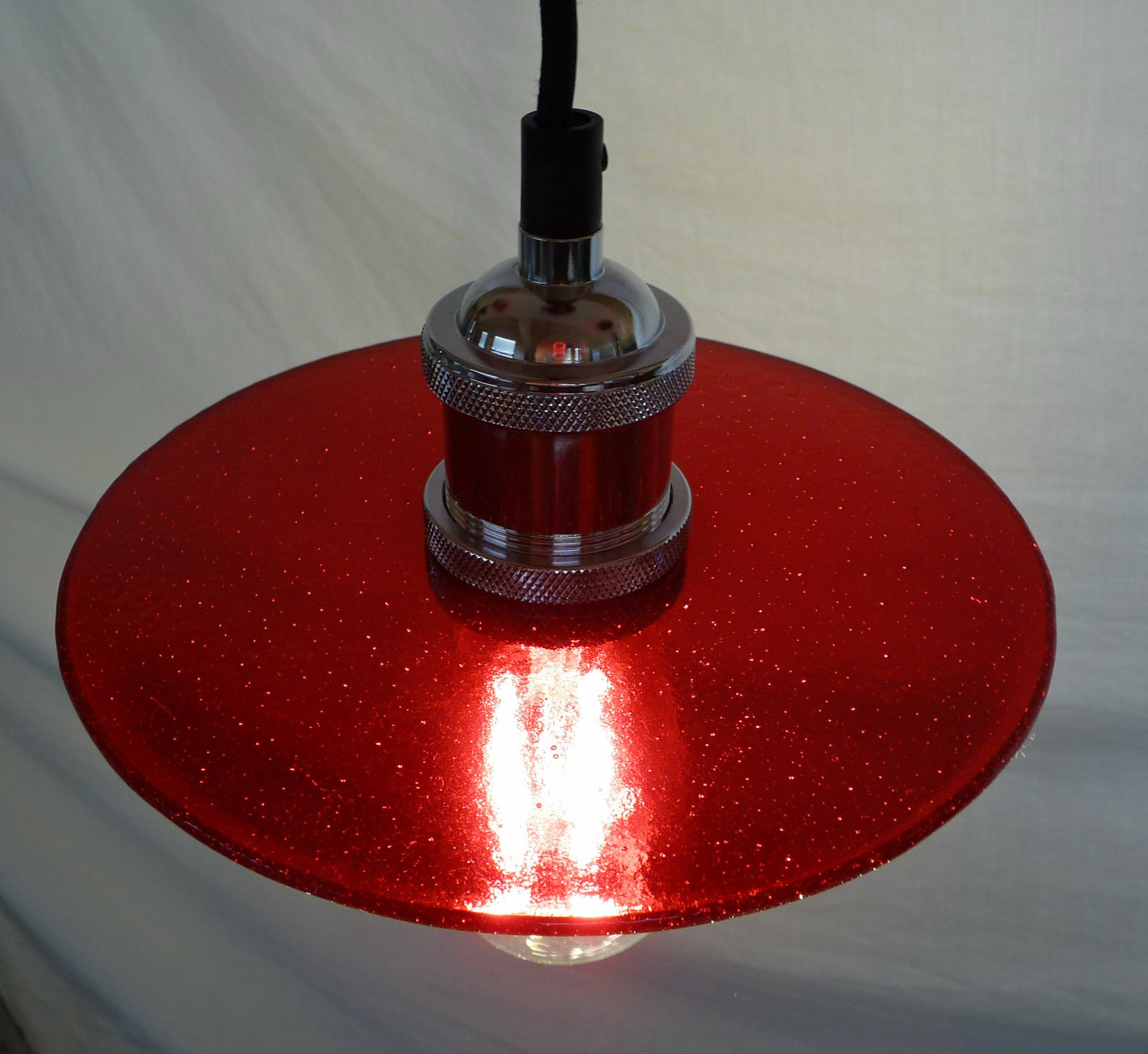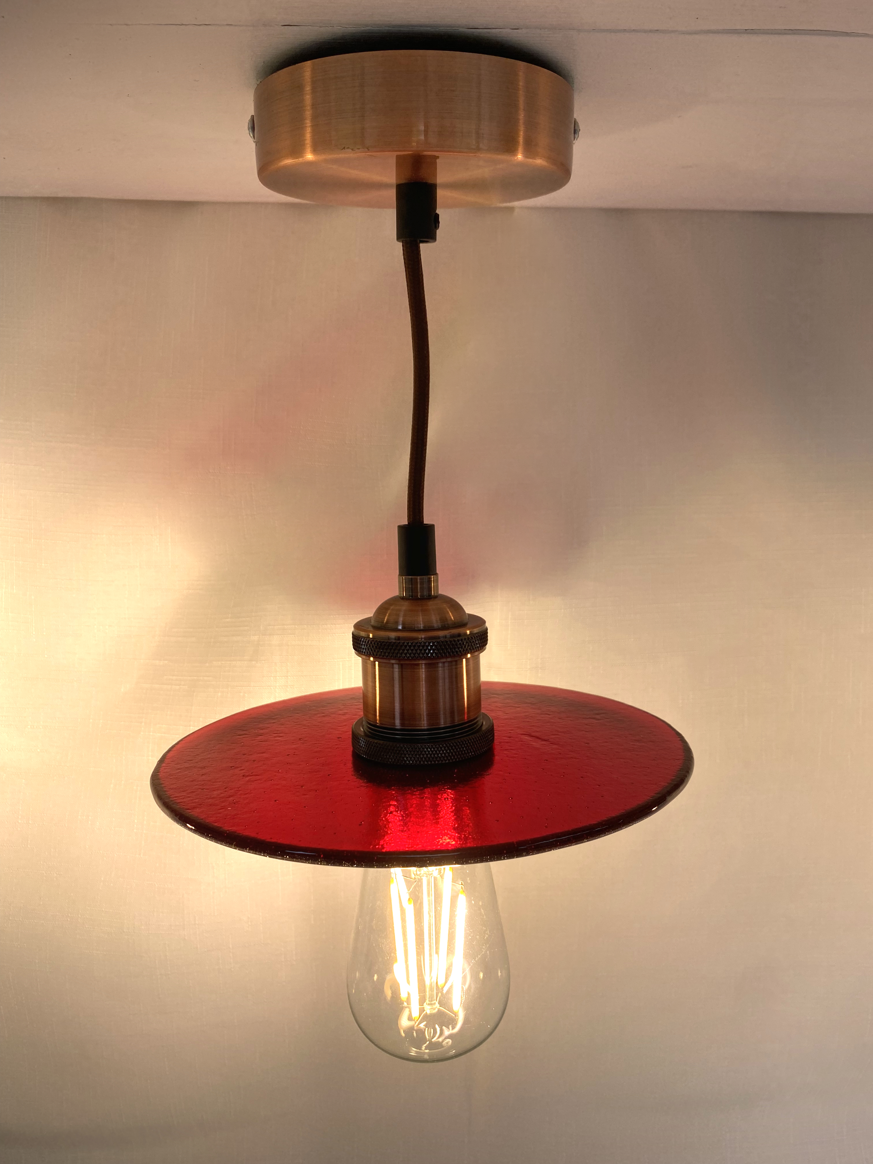 A contemporary handcrafted fused glass light shade with a choice of pendant light fitting